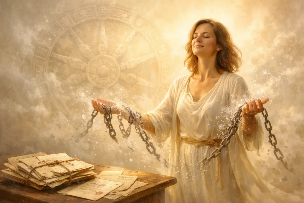 - Сделайте одно действие: закройте хотя бы один мелкий долг, отмените ненужную услугу или напомните о долге вам. Это и есть кармический сброс на уровне материи. Вы закрываете старые «счета» Вселенной.
