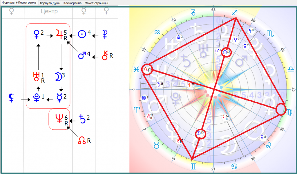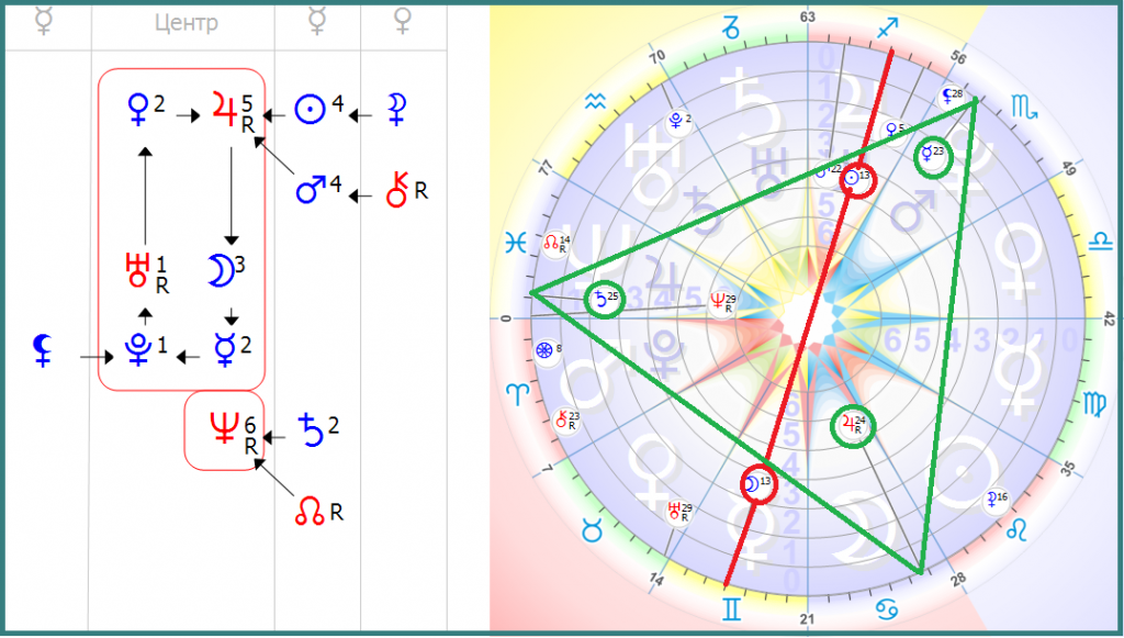 Меркурий (Скорпион) — Сатурн (Рыбы) — Юпитер (Рак)
